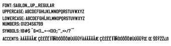 Sablon Up เป็นครอบครัวตัวอักษรที่หลากหลายประเภทที่ออกแบบมาสำหรับ Windows ซึ่งรวมเอาสุนทรียศาสตร์อุตสาหกรรมเข้ากับสไตล์วิทยาลัยย้อนยุค ตัวอักษรที่สูงและกระชับและโครงสร้างเรขาคณิตที่แข็งแกร่งทำให้มันเป็นตัวเลือกที่ยอดเยี่ยมสำหรับหัวข้อที่มีผลกระทบและโลโก้ที่โดดเด่น ตัวอักษรนี้มีน้ำหนักที่แข็งแกร่งซึ่งถ่ายทอดความทันสมัย ในขณะที่สไตล์วิทยาลัยนำเสนอความรู้สึกย้อนยุคด้วยเงาที่ซ้อนกันและการเติมที่มีพื้นผิว เหมาะสำหรับการสร้างแบรนด์กีฬา หรือการออกแบบที่มีธีมย้อนยุค นอกจากนี้ รุ่นที่มีเส้นขอบยังให้คุณภาพคล้ายสเตนซิลที่เพิ่มความสนุกสนานแต่มีความหยาบกร้าน ทำให้เหมาะสำหรับโปสเตอร์ บรรจุภัณฑ์ และสินค้าที่ขาย